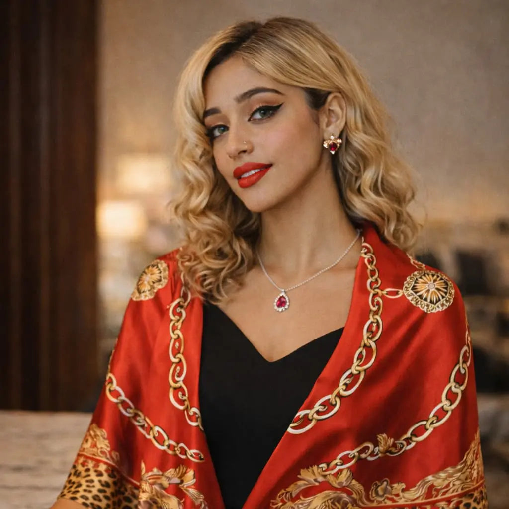 Această eșarfă mare pătrată trece fără efort prin anotimpuri, adăugând un accesoriu atemporal garderobei tale.